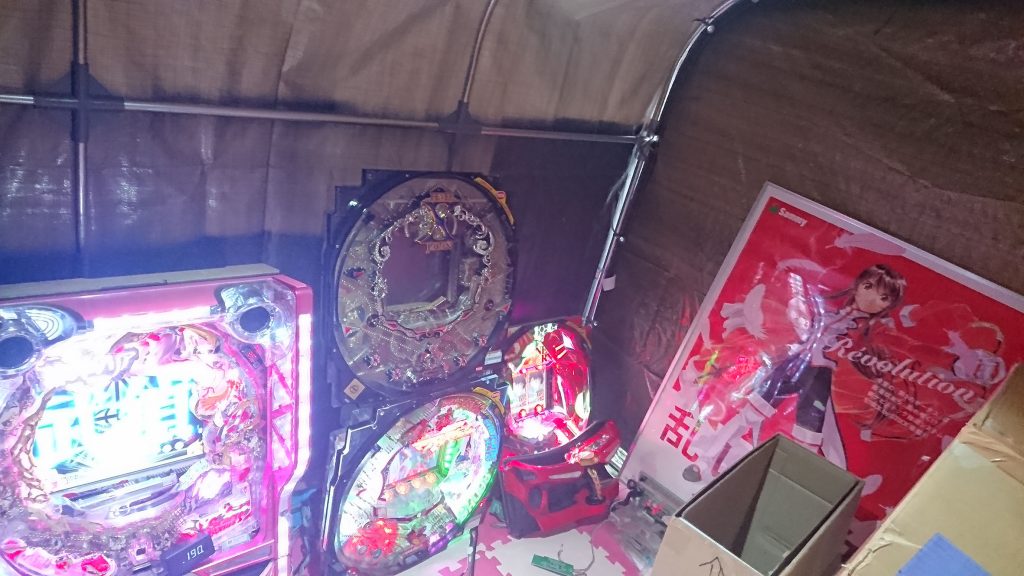 サイクルハウスを改造して実機配信部屋にしております。 福音light、xjapan紅魂、マクロス魂キラッ、を卓上に改造しました。 初代緋弾のアリアには思い入れがあるので、近々変換コンバーターを購入予定です。よろしくお願いいたします。