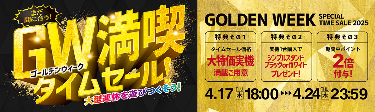 「GW満喫タイムセール!」は実機が安いだけでなく、