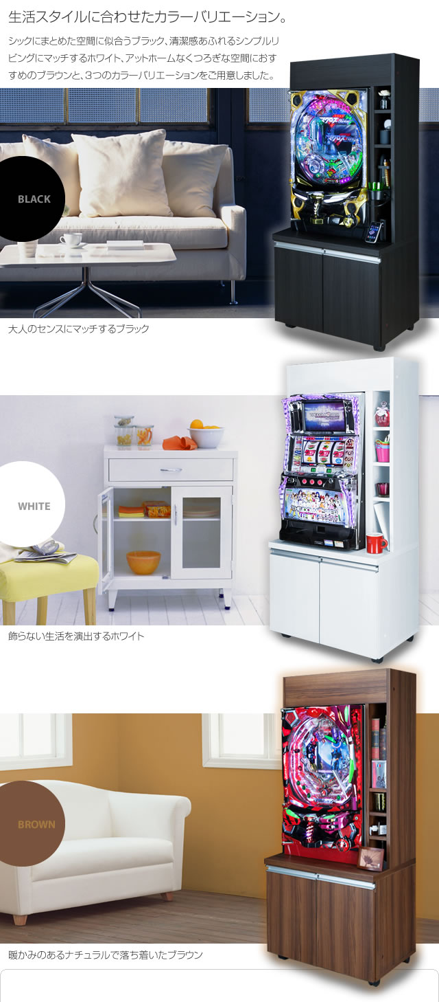どういう事かというとキャビネット自体が多目的棚としてご利用できちやいます。パチンコ台を設置して空いているスペースは棚に変身!自分の好きな物を置けちゃいます♪