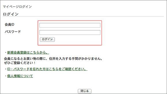 1、各ページ上部の「マイページへログイン」をクリックする。