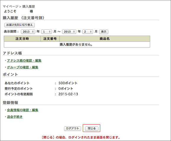 (注)「ログアウト」を押すとデータカウンター購入時(カートボタンクリック時)に再度、会員IDとパスワードの入力が必要となります。ご注意ください。